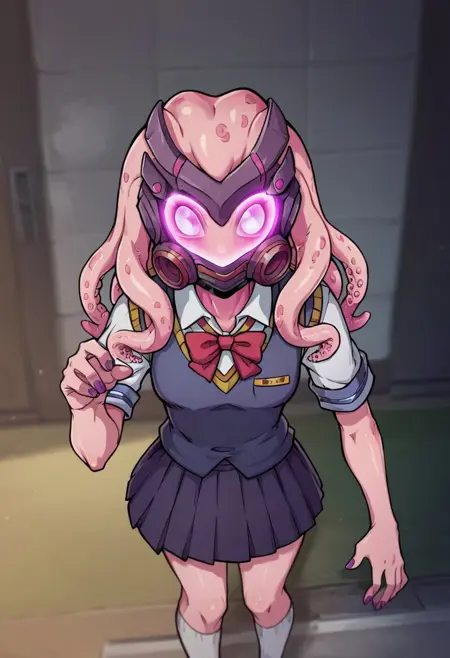 基础外观:小胸、头盔、面具、发光眼睛、触手头发、怪物女孩、粉嫩皮肤、彩色皮肤、深紫色指甲