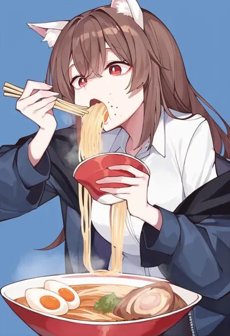 Based off the meme of people eating ramen, this would be the first time I tried to create a LoRA using the in-house generator where I use another checkpoint than the default ones... Boi did I not expect that it would end up being 1,000 Buzz.