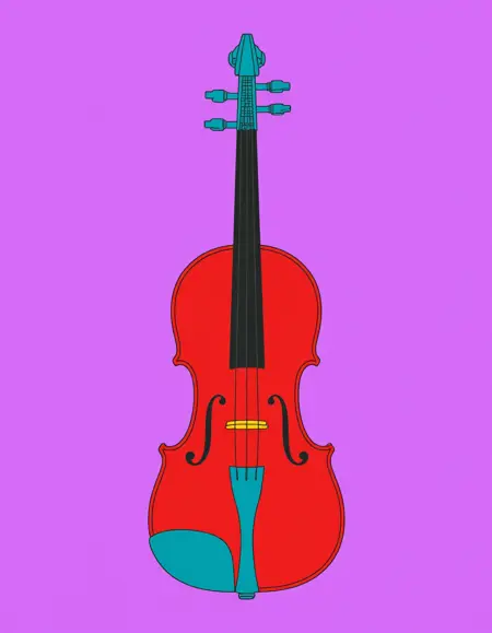 • a flat color illustration of a purple gaming controller with green, yellow, blue, and red buttons against a light blue background in the style of michael-craig-martin