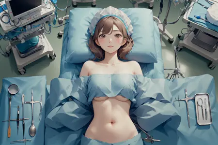 이 모델을 학습시킨 이유는 Stable Diffusion이 수술 천을 어떻게 그려야 할지 모르기 때문입니다. 이 모델을 그대로 사용하면, 소녀가 수술 천으로 완전히 가려지는 경우가 많습니다. 복부를 드러내려면 "navel"을 추가하세요. "breasts"나 "naked"를 추가하면 가슴 부위도 드러날 가능성이 높습니다.