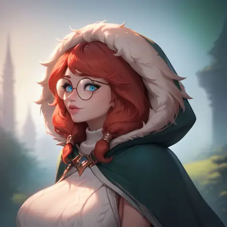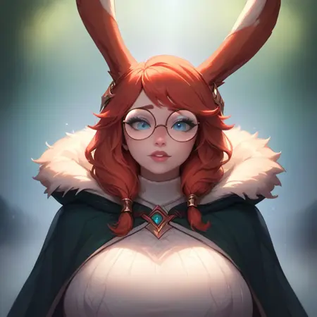 基本プロンプト: Aurora lol, 1girl, 赤髪, 円形の眼鏡, そばかす, ジュエリー, 兎の耳,