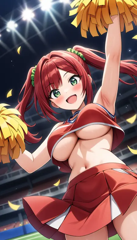 권장 키워드: 녹색 눈, 빨간 머리카락, 한쪽 올리기, 머리 장식, 녹색 헤어バンド