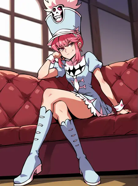 고쿠 유니폼 (베타) 샤코 모자, ,,모자, 어깨 갑옷, 언더북, 스트랩리스 하의, 긴 소매, (갑옷), 허벅지까지 오는 양말, 손을 허리에 대고,, 미소, C-스트링, 노출되는 옷, 스피커,,