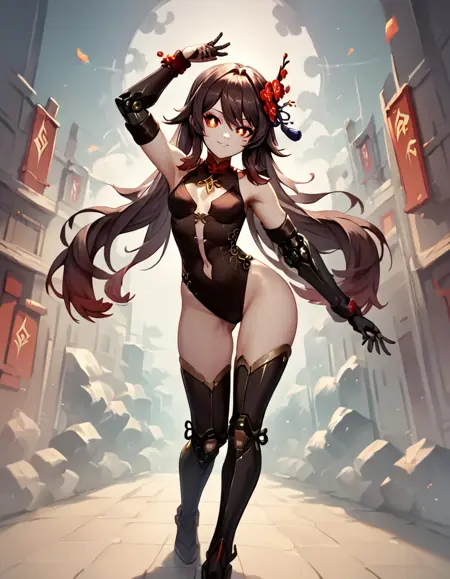 thigh boots, elbow gloves를 추가하면 전체 복장을 적용합니다.