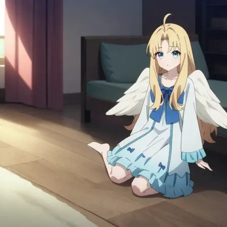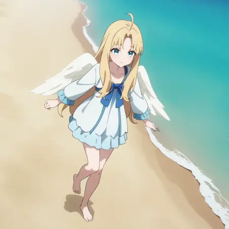 tny-filo, 白色翅膀, ahoge, 白色连衣裙, 粉色比基尼