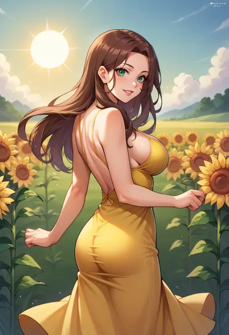 기타: mldornd, 갈색 머리, 가슴선, 녹색 눈, 큰 가슴, 긴 머리