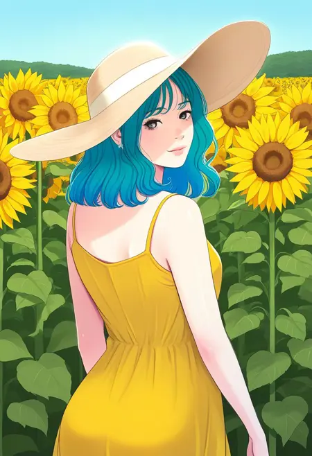 13. ((白色上衣,无袖黄色格子连衣裙,))