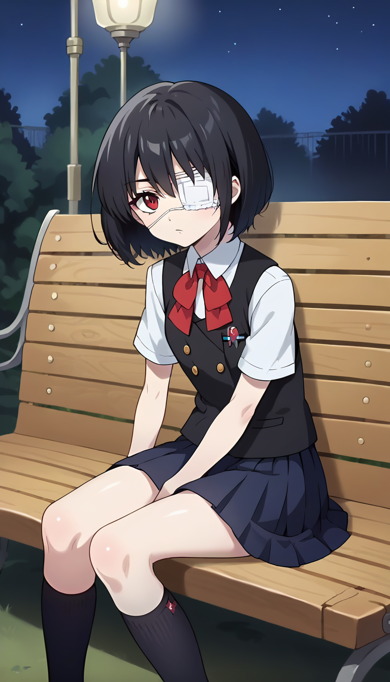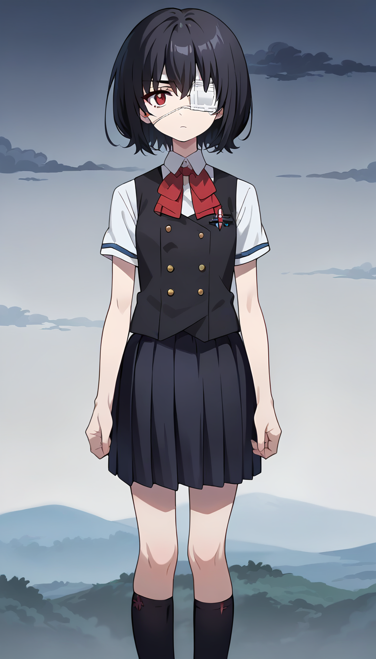 トリガー語: meimisaki、黒髪、赤目、医療用アイパッチ