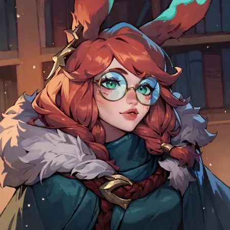 基础提示词示例: lora:AuroraLol:1, aurora (league of legends), 1girl, solo, blue eyes, rabbit ears, freckles