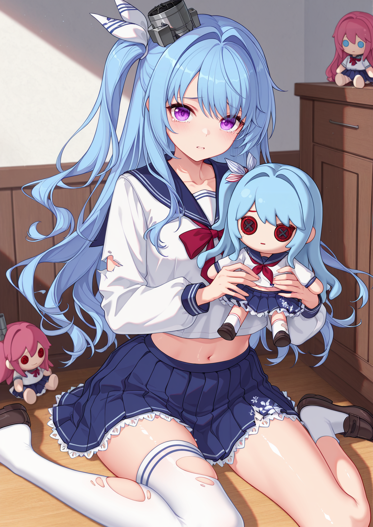 | トレーニングワード | murakumo \(warship girls r\), 1girl, blue hair, long hair, purple eyes, solo, skirt, white background, thighhighs, full body, school uniform, blue skirt, single thighhigh, socks, shoes, navel, ribbon, asymmetrical legwear, long sleeves, looking at viewer, serafuku, pleated skirt, hair ribbon, loafers, kneehighs, shirt, right one side up, standing, closed mouth, uneven legwear, midriff, sailor collar, white shirt, single sock, bangs, smile, bow, turret, character doll, (holding doll), smokestack headwear, smokestack on head, stuffed toy, doll face, red button eyes, blue hair doll, doll same hair color as girlコピーしました! murakumo \(warship girls r\), 1girl, blue hair, long hair, purple eyes, skirt, torn clothes, thighhighs, solo, right one side up, white background, school uniform, sitting, pleated skirt, navel, looking at viewer, wariza, shoes, blue skirt, serafuku, single thighhigh, ribbon, long sleeves, tears, torn thighhighs, hair ribbon, asymmetrical legwear, shirt, bangs, midriff, character doll, sailor collar, frilled skirt, single shoe, full body, parted lips, socks, white shirt, loafers, (holding doll), smokestack headwear, smokestack on head, stuffed toy, doll face, red button eyes, blue hair doll, doll same hair color as girlコピーしました! murakumo \(warship girls r\), 1girl, long hair, purple eyes, blue hair, pink background, solo, skirt, sailor collar, school uniform, white shirt, looking at viewer, long sleeves, shirt, serafuku, pleated skirt, black skirt, closed mouth, hair between eyes, blush, bangs, from side, black sailor collar, headgear, character doll, (holding doll), midriff, smokestack headwear, smokestack on head, stuffed toy, doll face, red button eyes, blue hair doll, doll same hair color as girlコピーしました! |