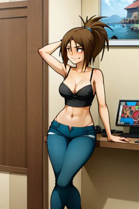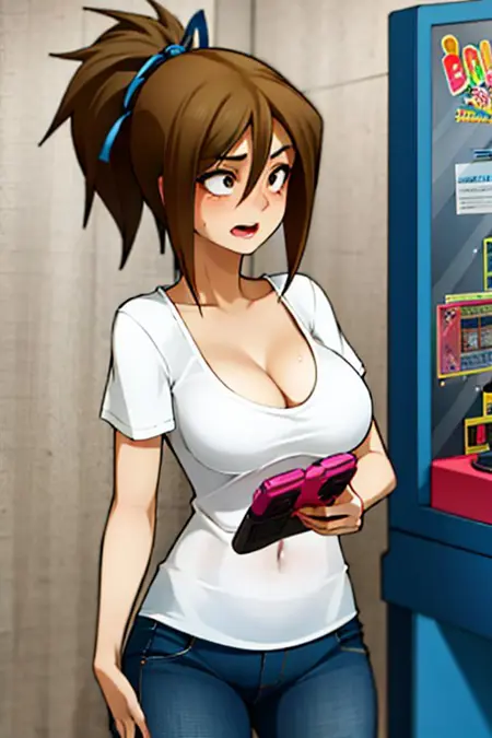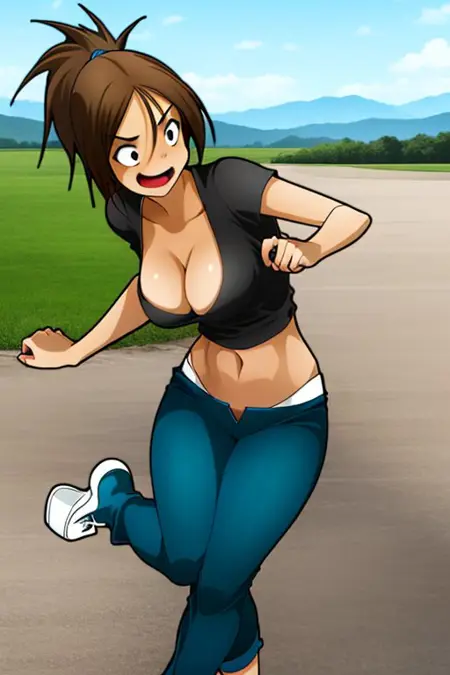 erika,jagoerika,棕色头发,马尾,乳沟,牛仔裤