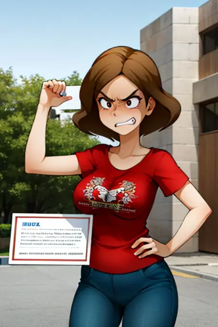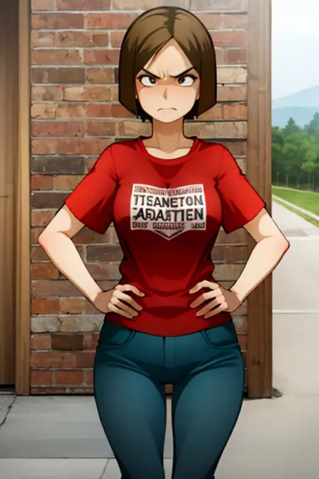clara,jagoclara,棕色头发,短发,红色上衣,牛仔裤