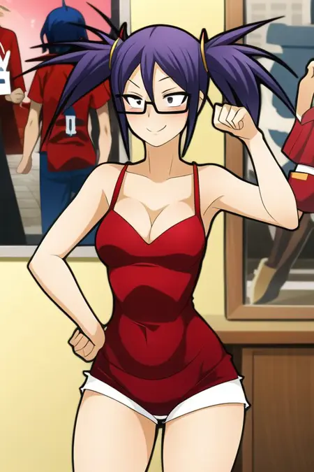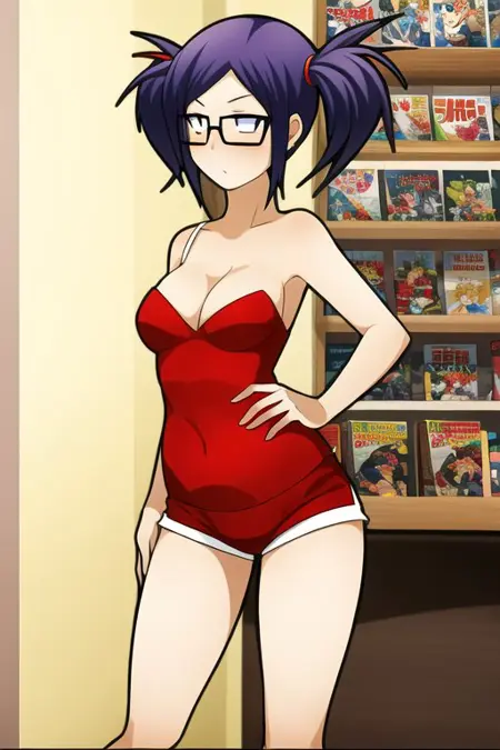elly,jagoelly,紫色头发,双马尾,短款上衣,短裤,眼镜