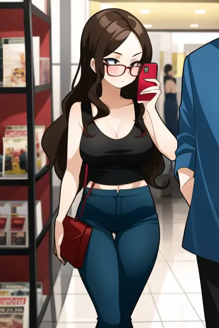 sophie,jagosophie,长发,棕色头发,红色头发,背心,长裤,眼镜