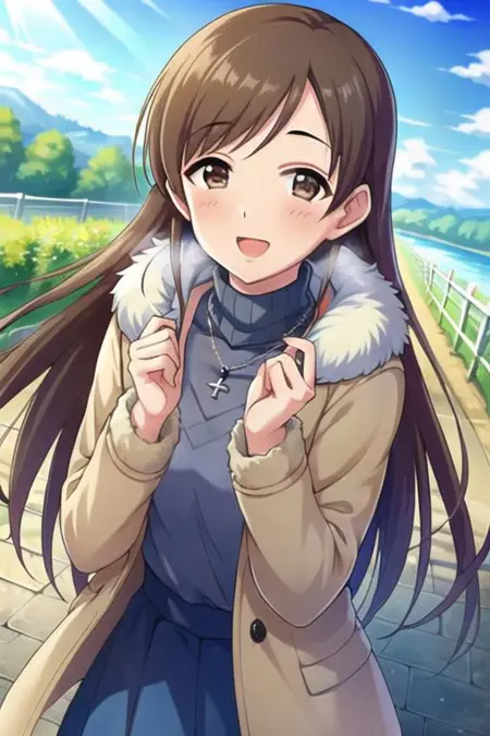 트리거 단어: 니따 미나미, 갈색 머리카락, 갈색 눈, 긴 머리