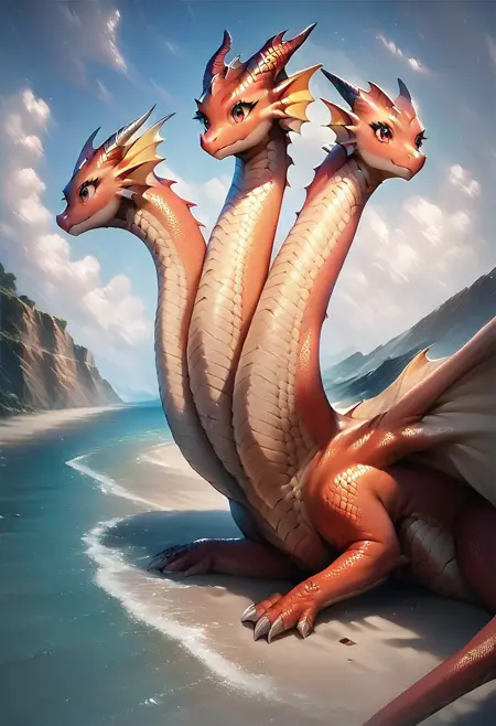 (V.5.1) A slightly modified version. Key tag: 3Hs. Additional tags: Three heads, 3 heads, three-headed, three_heads, 3heads, threeheaded.