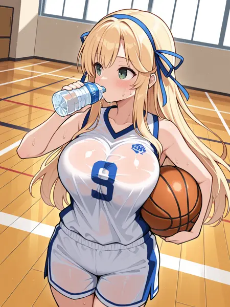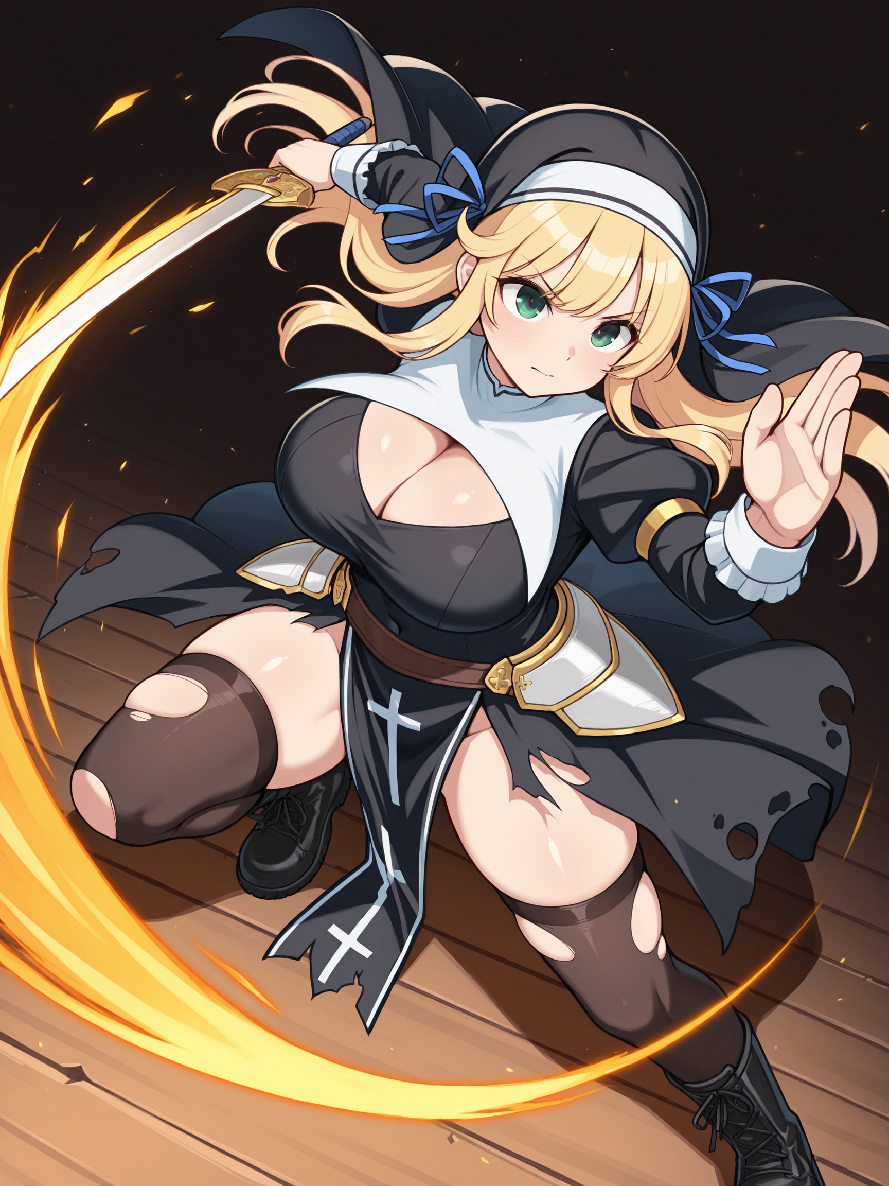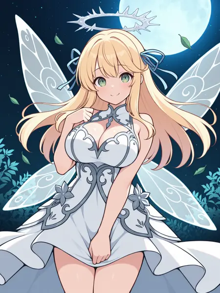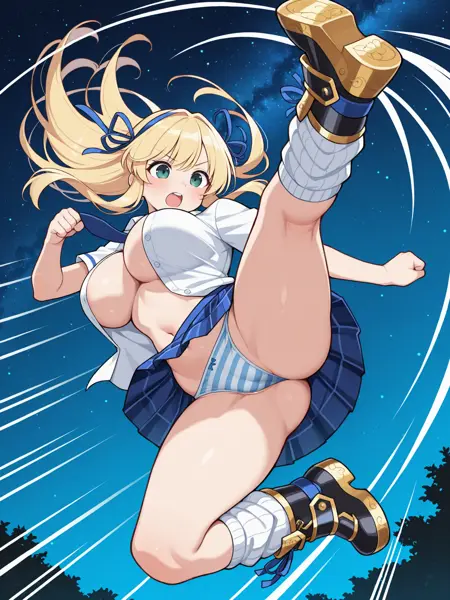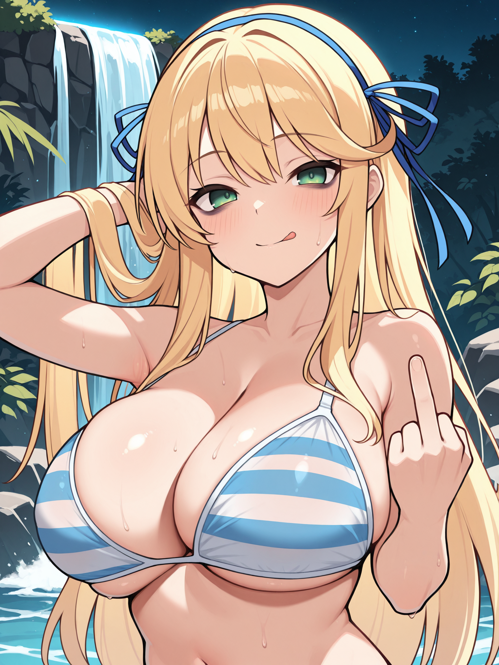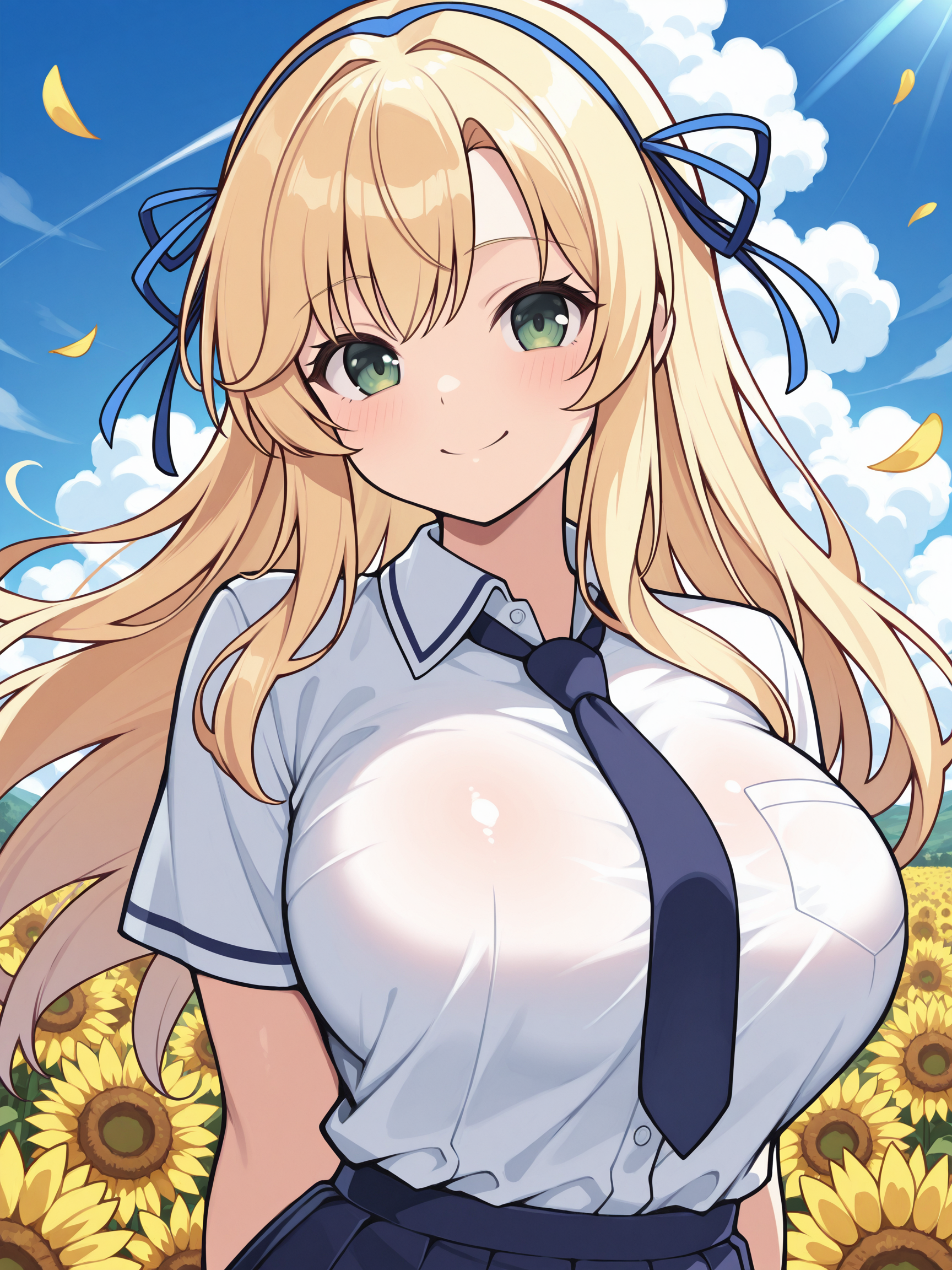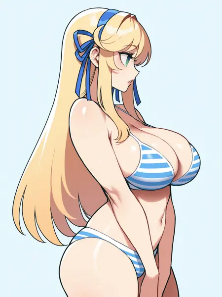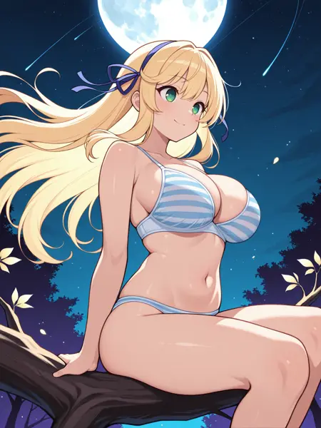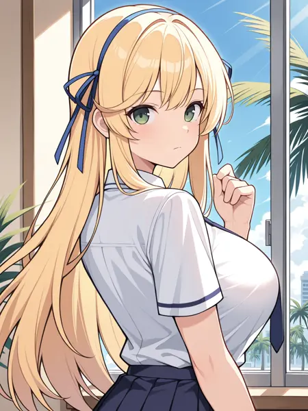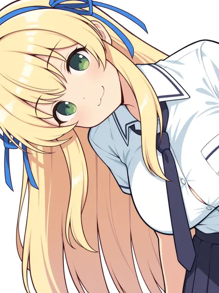 LoRAのトリガー語は**"Katsuragi_XL, 緑の目, 長い金色の髪, 青い髪リボン, ダブル髪リボン, 大きな胸"**です。