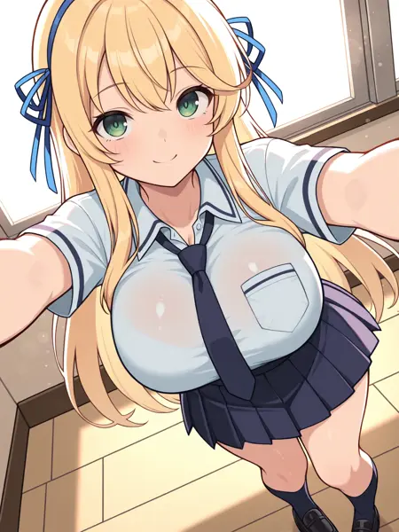 LoRAのトリガー語は**"Katsuragi_IL, 緑の目, 長い金色の髪, 青い髪リボン, ダブル髪リボン, 大きな胸"**です。