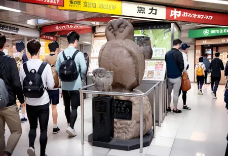 This is LoRA, which could possibly depict the scenery in the vicinity of the “Ikefukuro” stone statue, a famous meeting place at Ikebukuro Station. / これは池袋駅にある待ち合わせ名所「いけふくろう」石像近辺の風景をもしかすると描くことができるのかもしれないLoRAです。