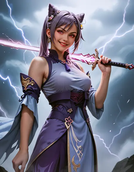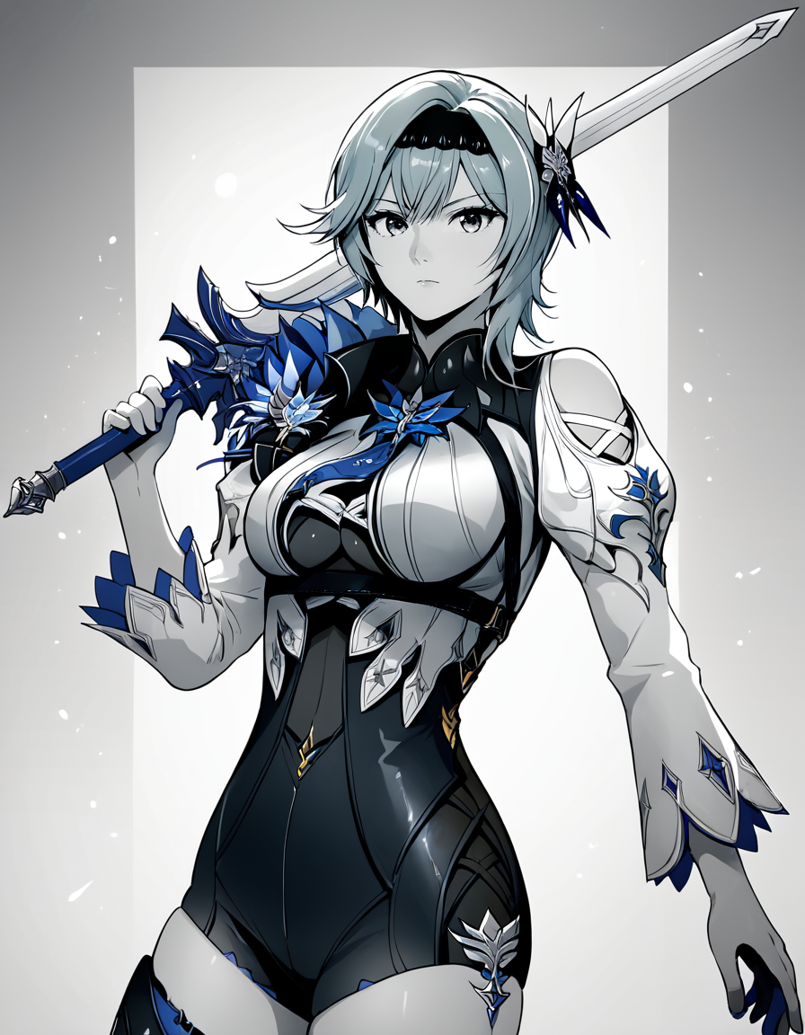 Trigger words: holding sword-over-shoulder, weapon over shoulder