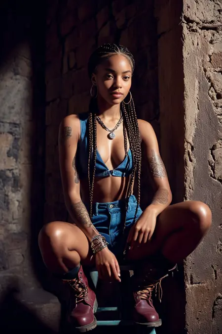 몸을 감싸는 문신으로 자신만의 개성을 표현하는 세계에 몰입하세요. 디자인은 다채롭고 화려하며 복잡하여, 마치 당신의 스타일처럼 각양각색입니다. 은과 금으로 제작된 반지가 거의 모든 손가락에 빛나며, 고급스러움과 개성을 더해줍니다.