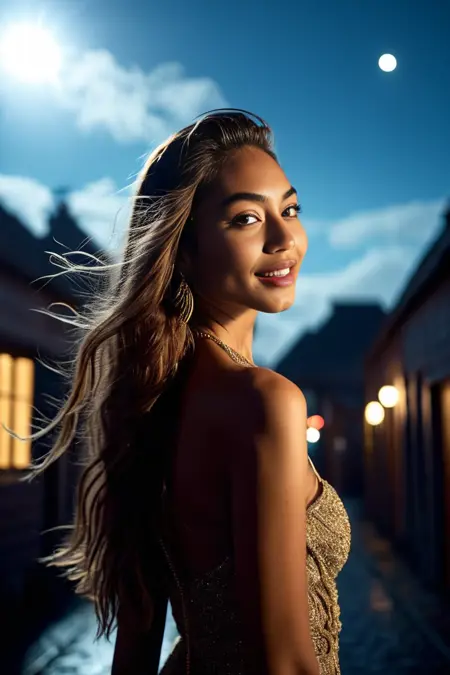 예: "아름다운 18세 소녀의 사진, 보헤미안: 화려하고 자연을 주제로 한 문신, 토착적인 보석, 보석 반지, 비즈 목걸이, 부드러운 시선, 최소한의 메이크업, 흐르는 보헤미안 드레스, 프린지가 달린 베스트, 자연스러운 피어싱, 맨발용 샌들, 깃털이 달린 긴 곱슬머리".
