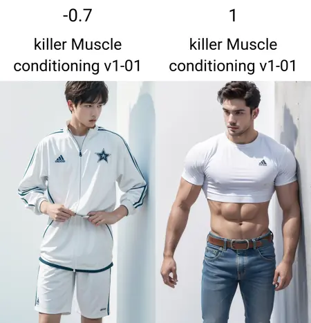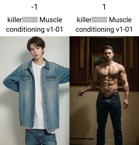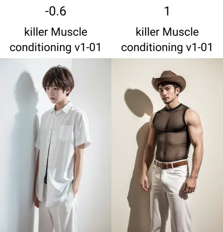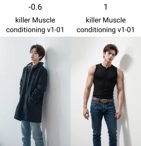 重みを-1から1に調整すると、腕の筋肉効果が得られ、男性に最適です。大規模モデルでは、リアリスティックなMajiv7、Majiv6などのリアリスティックシステムを選択できます!
