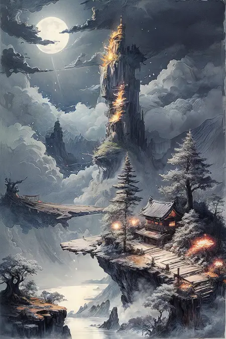 今回は、雲と山のシーンのコンセプトデザインに適したLORAをご紹介します。墨絵風のタッチが加わっており、非常に遊びやすい体験を提供します。