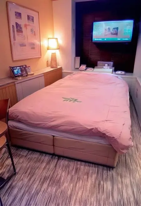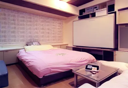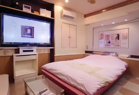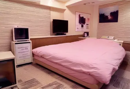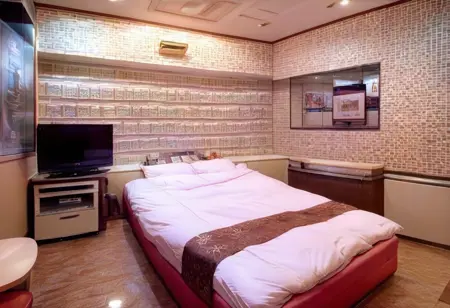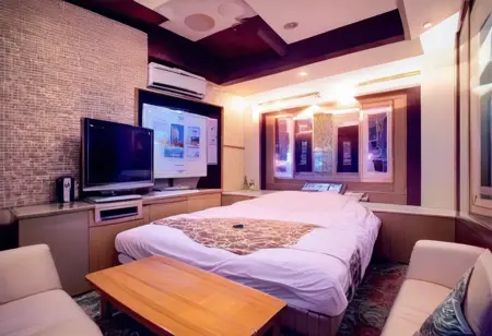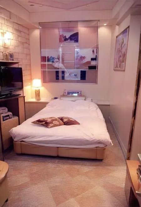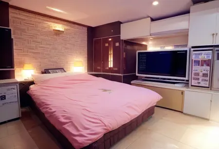 lovehotel, LHbedpanel, bed, pillow, table, couch, televison, scenery, indoors,