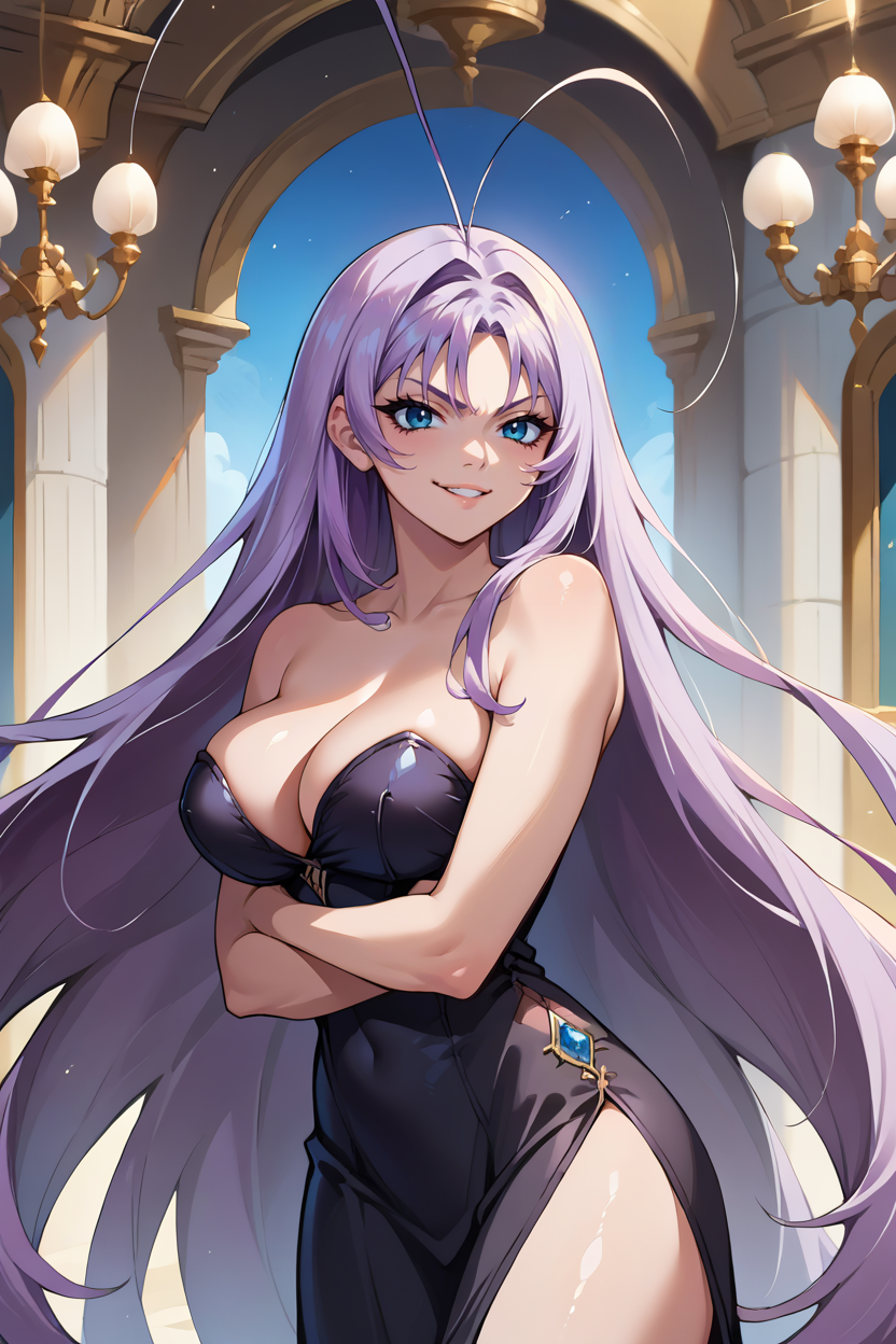 トリガー単語は「natsumemaya」であり、「青い目、ラベンダー色の髪、アンテナ髪、非常に長い髪」が必要です。