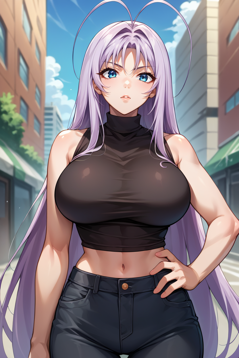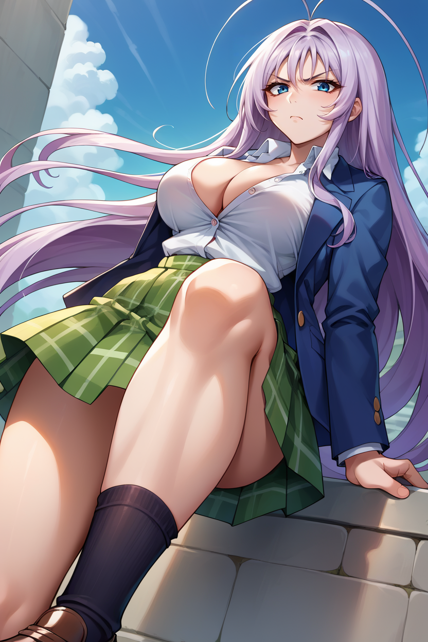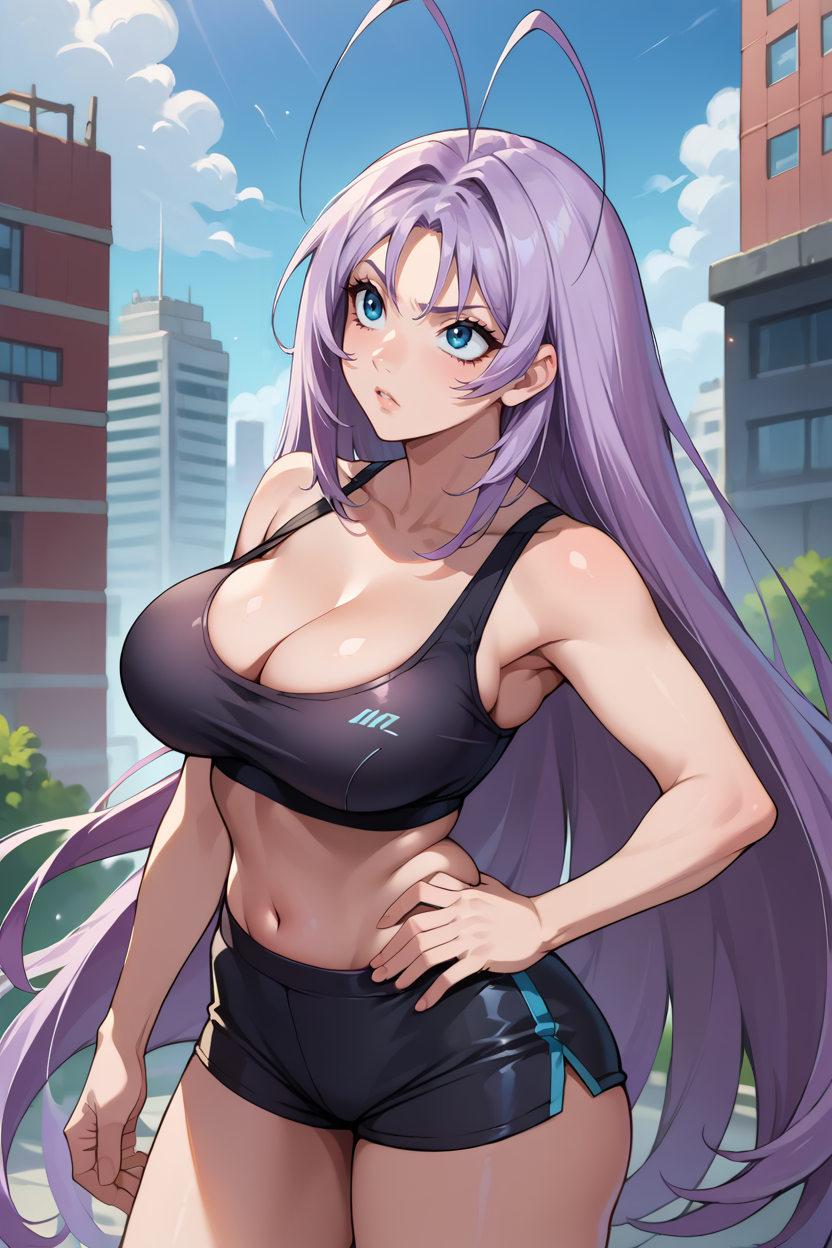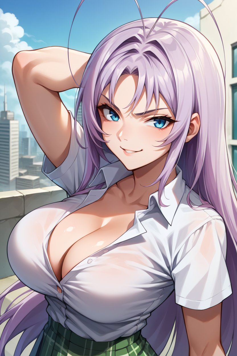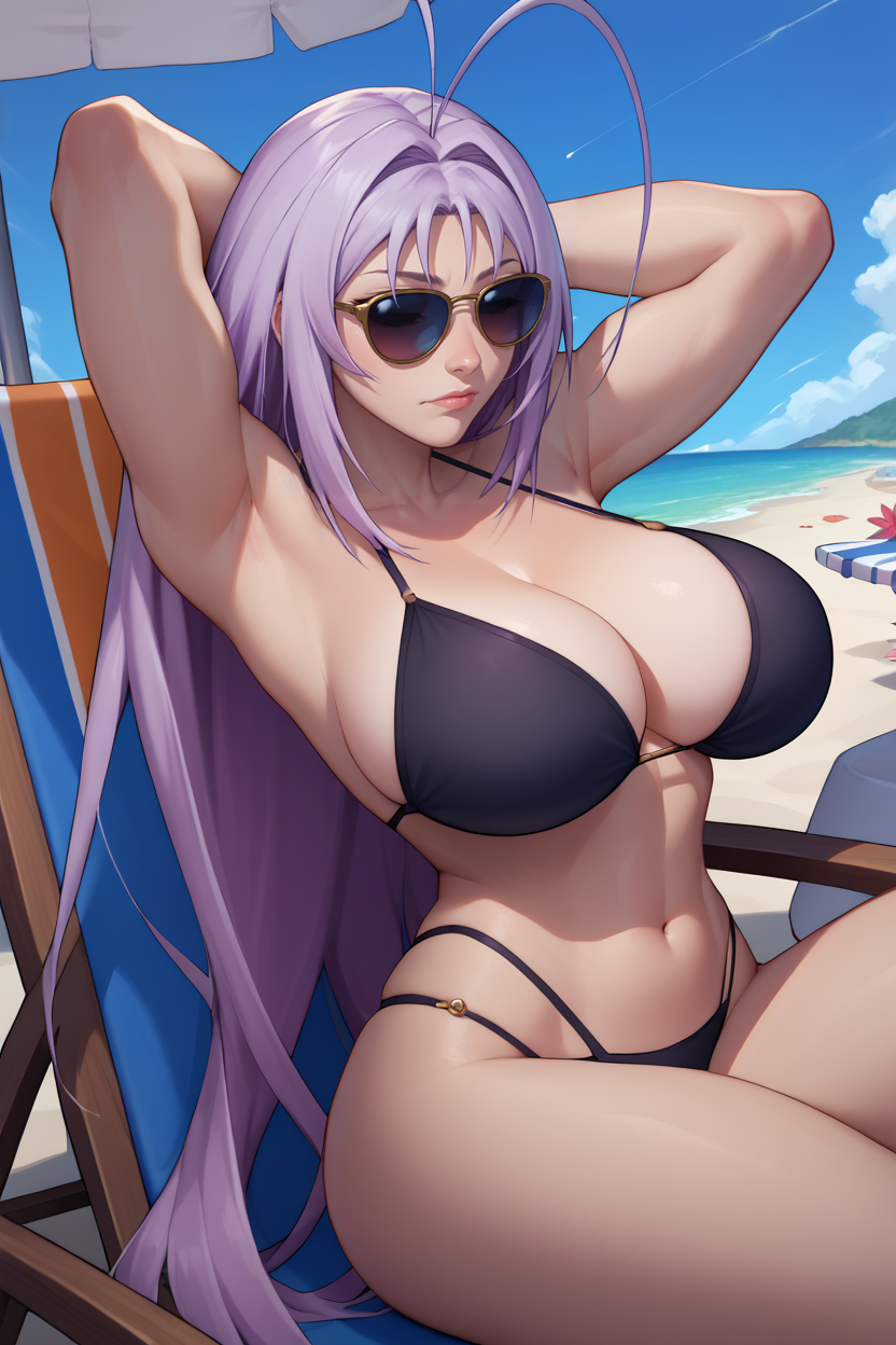 『天照天恵』の真夏麻耶。Pony Diffusion V6 XLで学習済み。強度0.8-1.0でテスト済み。