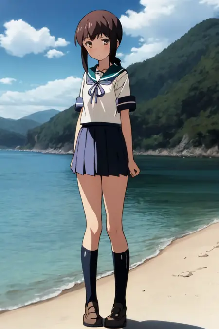 基础提示词:1girl, fubuki \(kancolle\), black hair, low ponytail, sidelocks, brown eyes