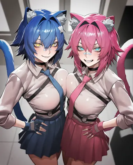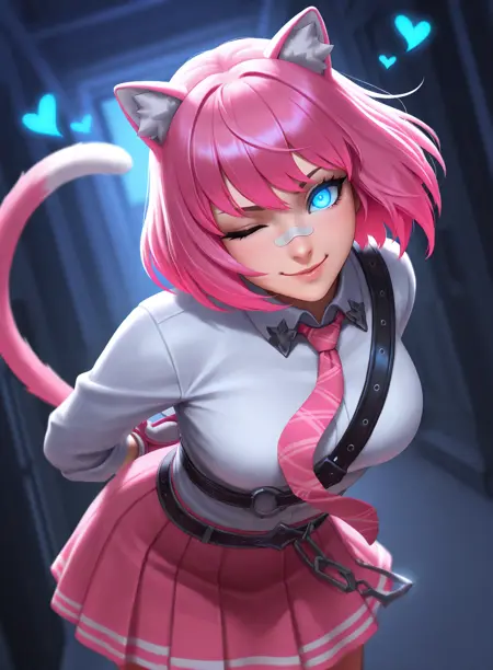 Study Hall Maeve触发词:studyhall_maeve、studyhall maeve服装、鼻子上的创可贴、粉色手套、发光的蓝色眼睛