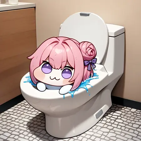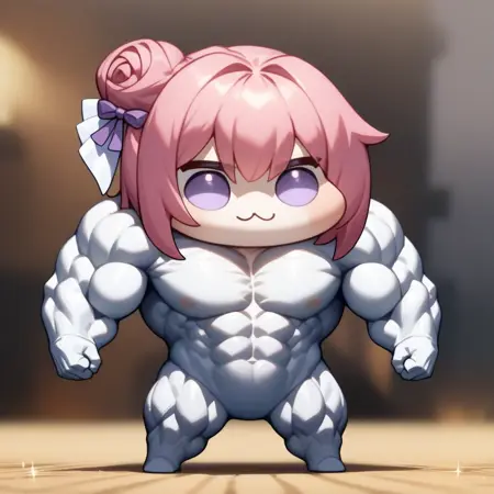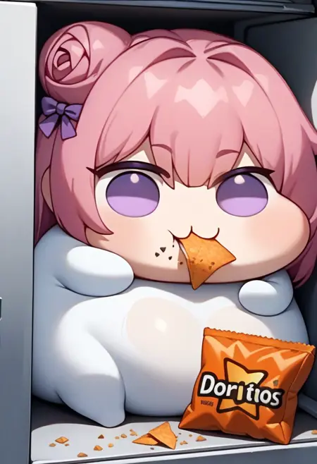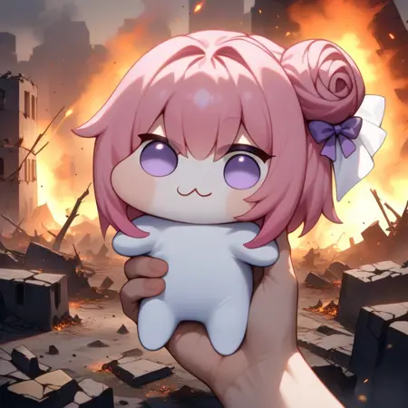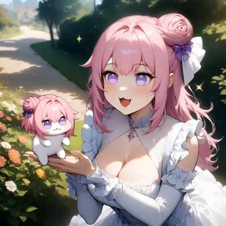 Doro - pink hair, purple eyes, single side bun, hair bow
