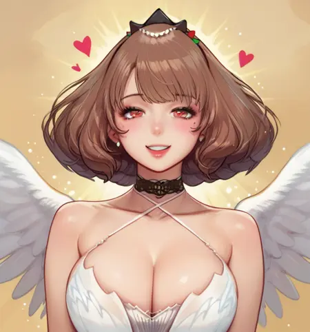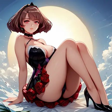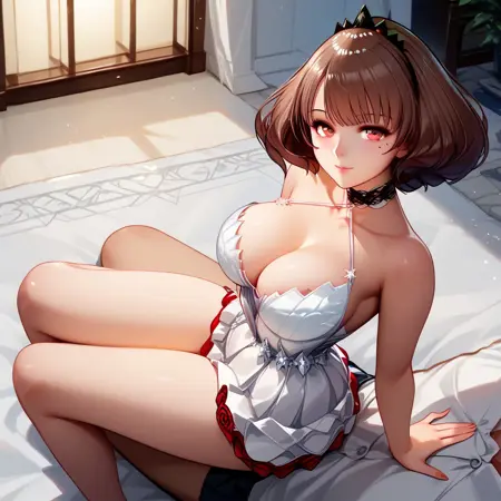 Trigger words: Anna Calivela, short hair, brown hair, red eyes, mole under eye, large breasts, wide hips,