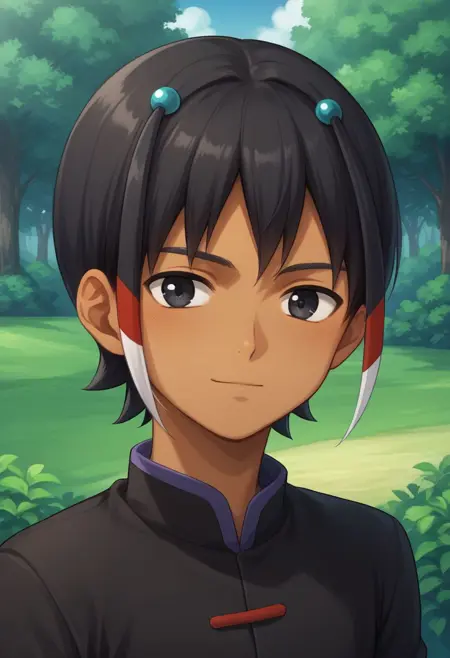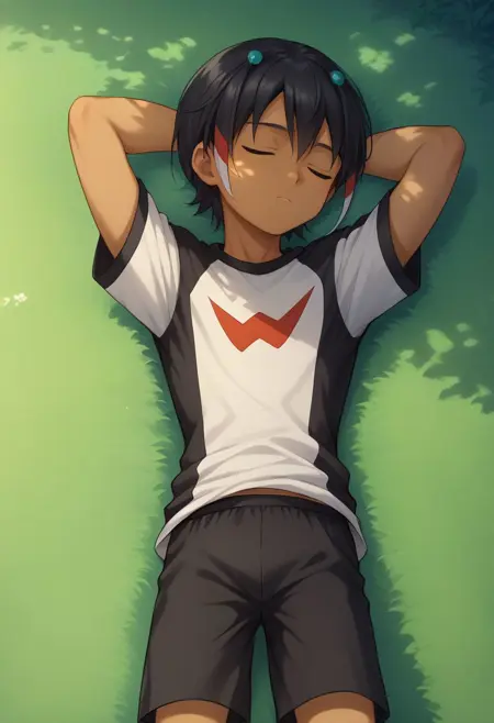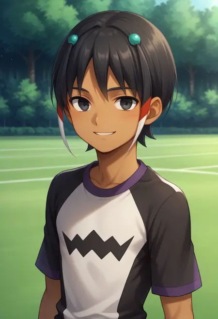 shuu, 1boy, 검은 머리, 머리 장신구, 검은 눈, 스포츠웨어, 축구 유니폼, 검은 피부,