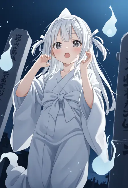 火葬がほとんどの日本において死者を棺桶に入れる際に着せる白装束関連のLoRAです。そこから転じて幽霊が着ている服という扱いをされることもあります。