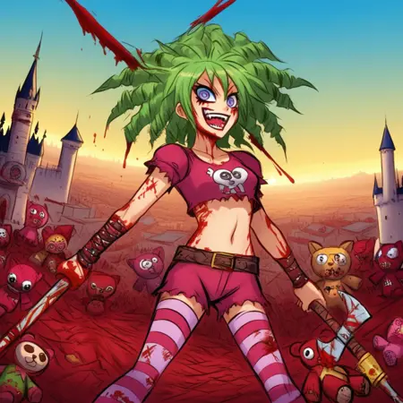这个LoRA基于Skottie Young为《我讨厌仙境!》创作的漫画艺术风格。《我讨厌仙境!》是一部由Skottie Young创作并绘图的黑色喜剧奇幻漫画,由Image Comics于2015年10月开始出版。漫画讲述了一个名叫Gert的女孩,她在童年时被传送到一个名为仙境的神秘世界的故事。