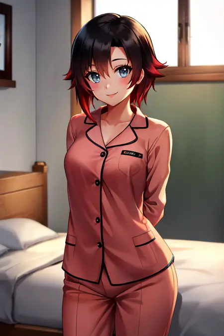如需要,请添加类似 渐变发色、黑发 和 红发 的发色属性,以及 灰色眼睛 或 银色眼睛。部分训练图像来源于 RWBY: Ice Queendom 的截图。
