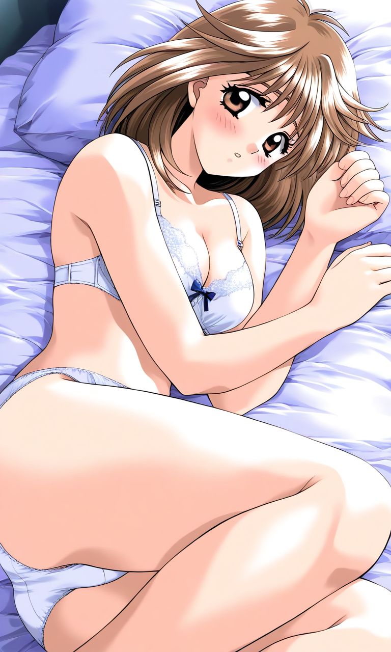 Mochida_Mahoko(kakyuusei), 1girl, solo, brown hair, brown eyes, medium hair, bangs, medium breasts,