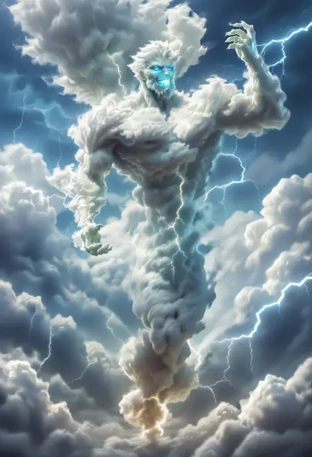 LoRAを最大限に活かすためのおすすめタグ:air elemental、ethereal creature、swirling air、magical elements、high fantasy、transparent、cloudy sky background