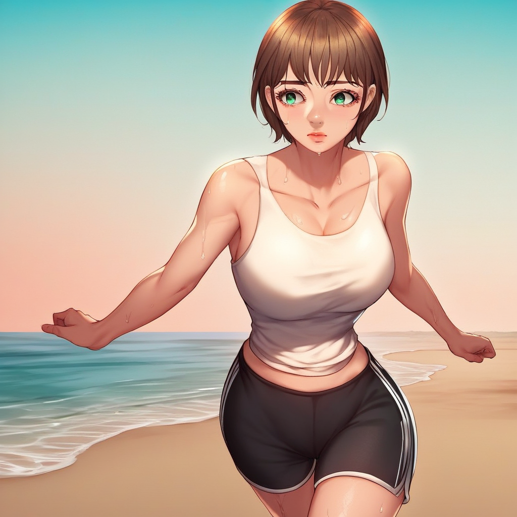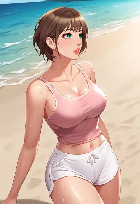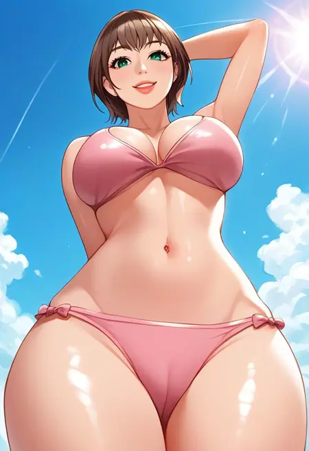 (( lora:lua:1 , lua, beautiful turquoise eyes, clear eyes, bright pupils, beautiful eyes, beautiful brown hair, beautiful short bob haircut, bangs, big and shaggy breasts, thin waist, wide hips, beautiful skin, natural beauty, extraordinary beautiful woman, attractive woman, super sexy woman, lustful body, sexy woman with seductive obscene body, sensual body, voluptuous body, sexy beauty, ))