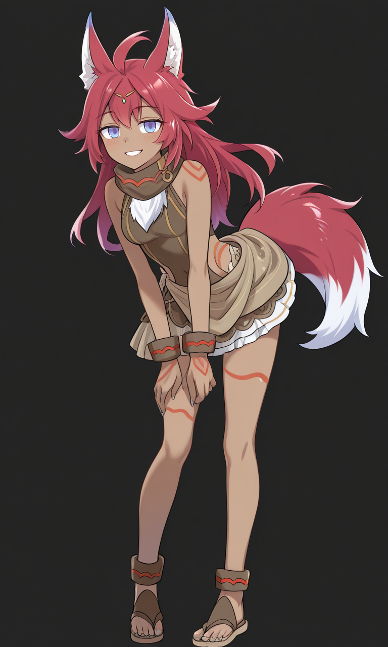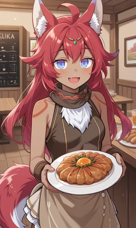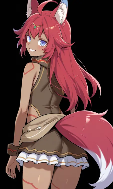 fuuka, dark skinned female, animal ears, tail, red hair,