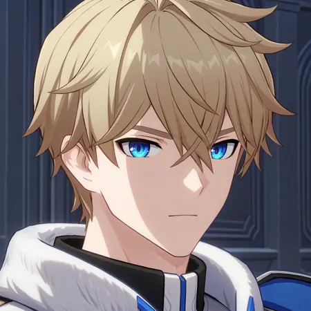 gepard, blonde hair, hair between eyes, blue eyes