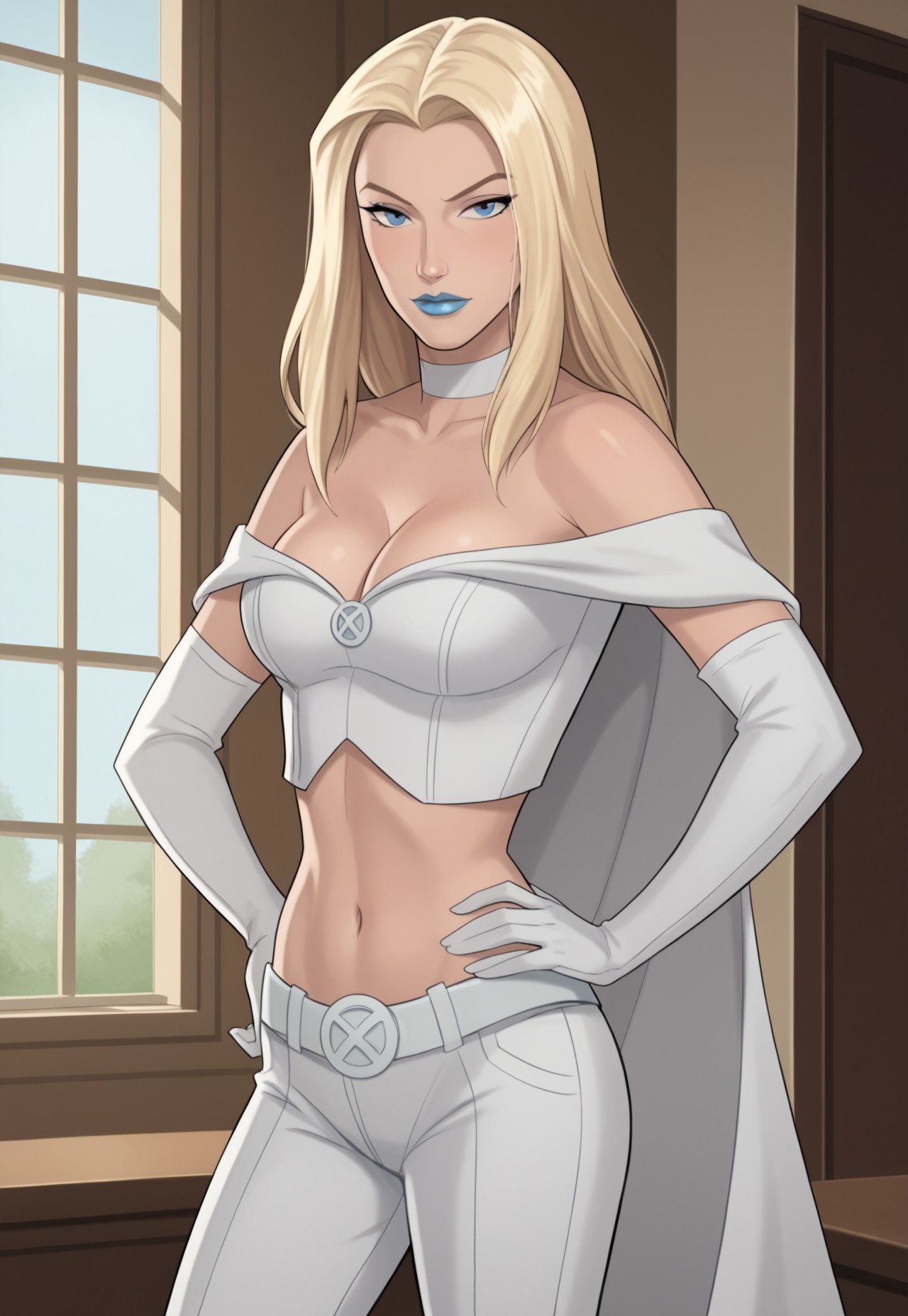 基本プロンプト:エマ・フロスト、金髪、長い髪、青い瞳