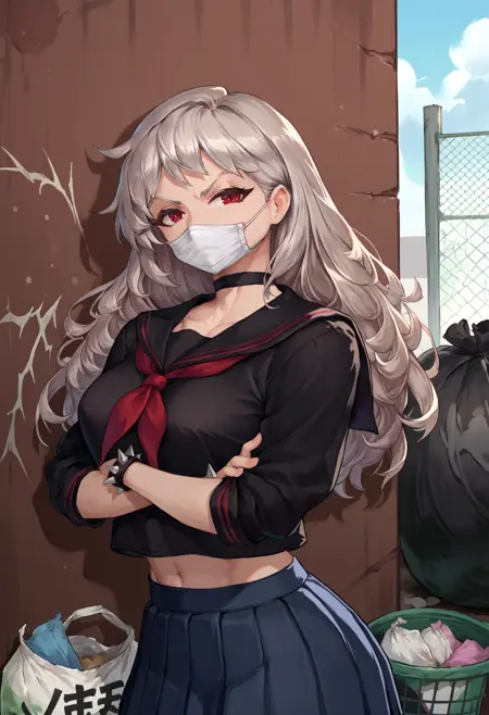 red eyes, grey hair, (white pupils), long hair, - helps with accuracy