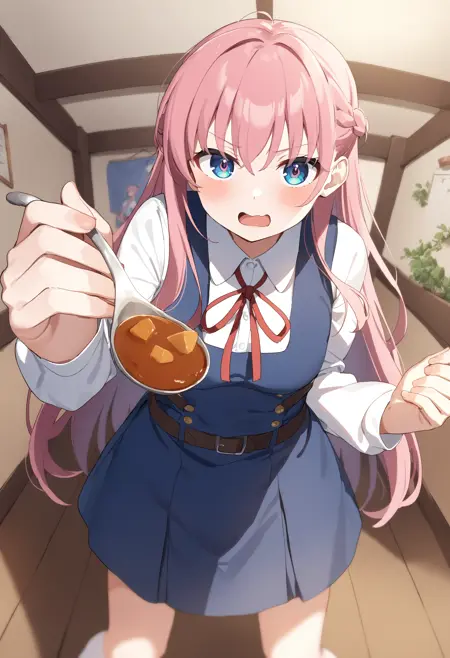 即使不使用其他词也能运行,但请务必包含feeding、food、open mouth、incoming food、looking at viewer,并指定递送的是什么食物,如叉子、勺子、筷子等以及食物名称。如果不指定,模型可能会递送一个无法分辨是炸鸡还是蛋糕胚的物体。