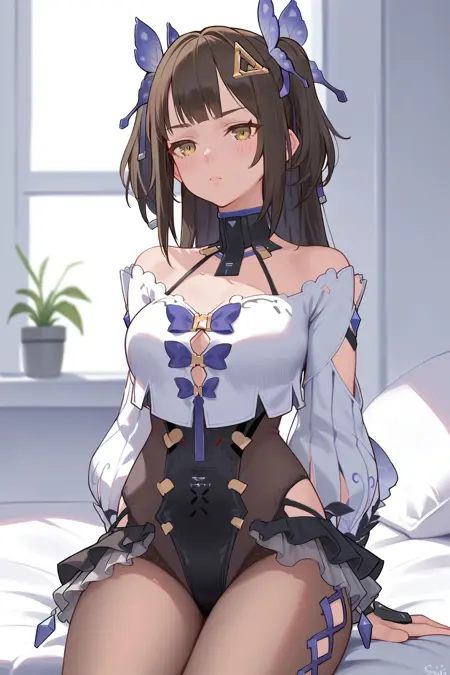Snow Breakの「喜びの羽ばたき」衣装を着たシリス。PonyXL v6。