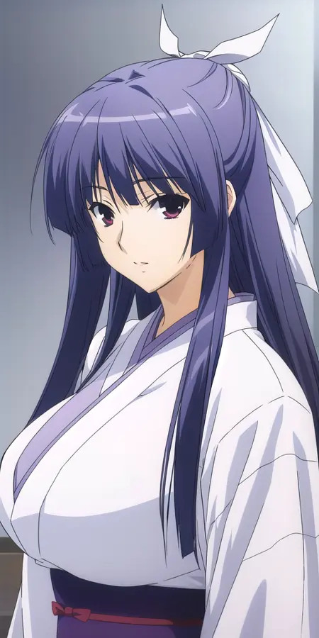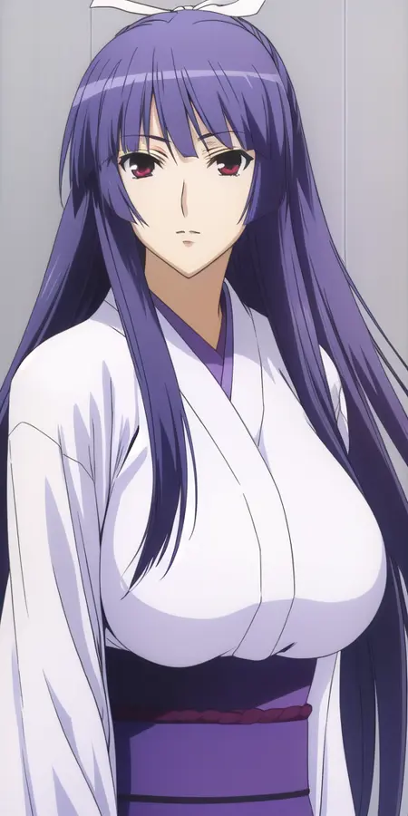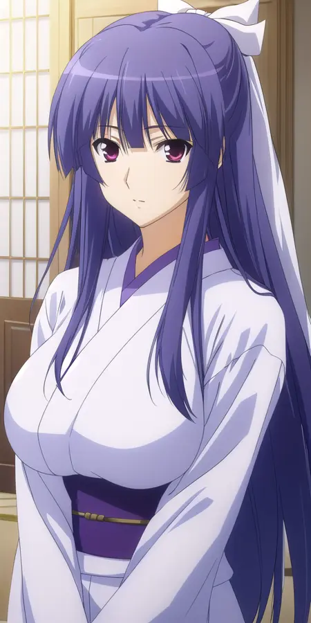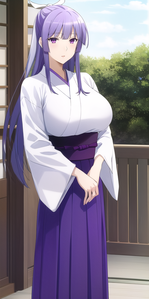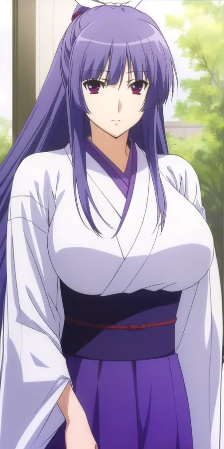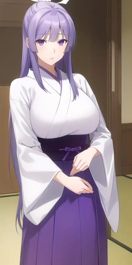 - Miko_White_kimono_Purple_hakama_skirt_Wide_sleeves_Purple_sash:彼女のクラシックなモディファイド神官服。