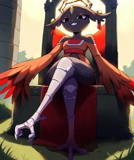 권장 긍정적 키워드: halo, feather hands, prosthetic leg, avian feet, long eyelashes, red eyeliner, kimono, slit dress, ear piercing ("collar"는 사용 가능하지만 잘 학습되지 않았습니다.)